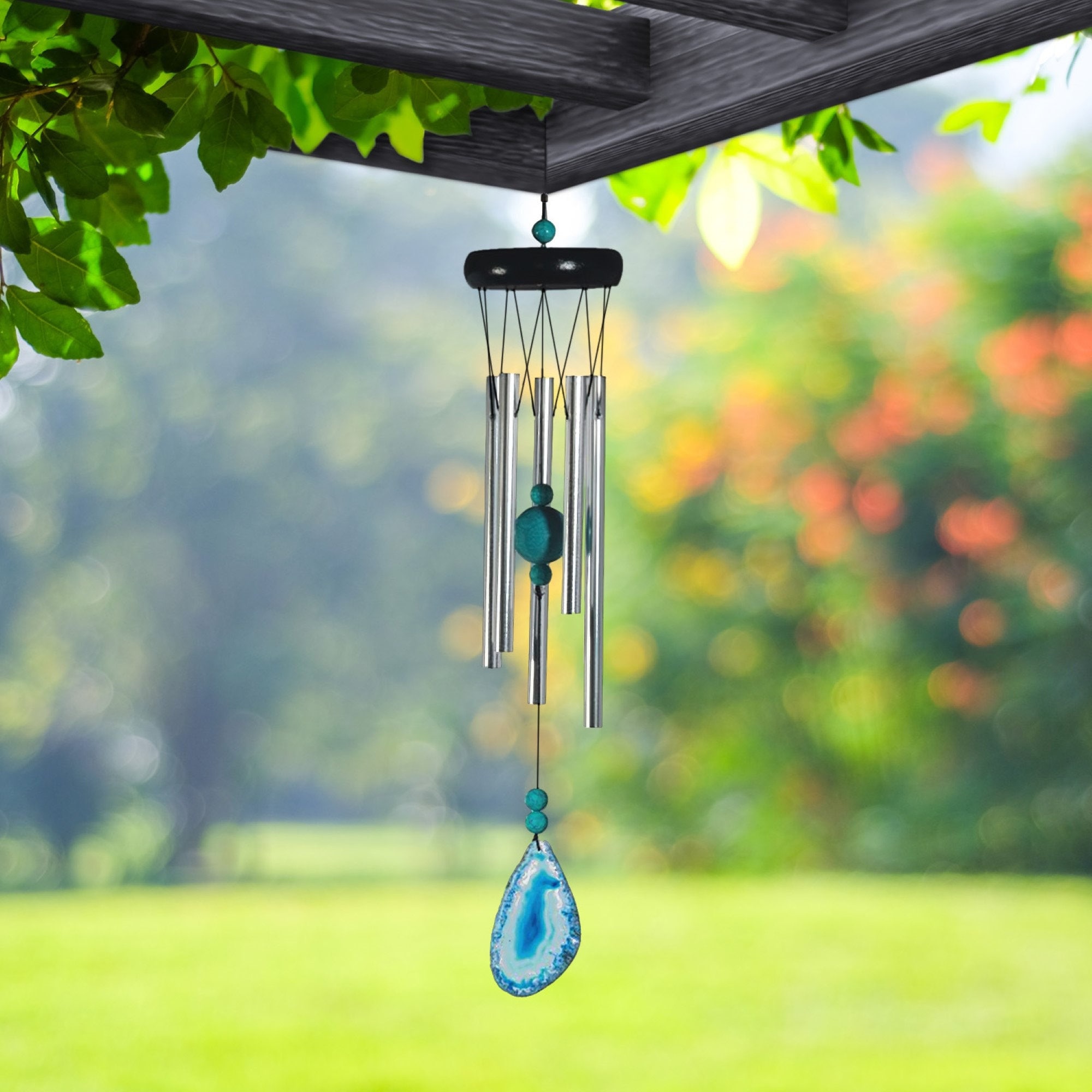 20" Long Wooden Top Geode Wind Chime With Gem Garden/Home Decor New Home Holiday Gifts For Him/Her