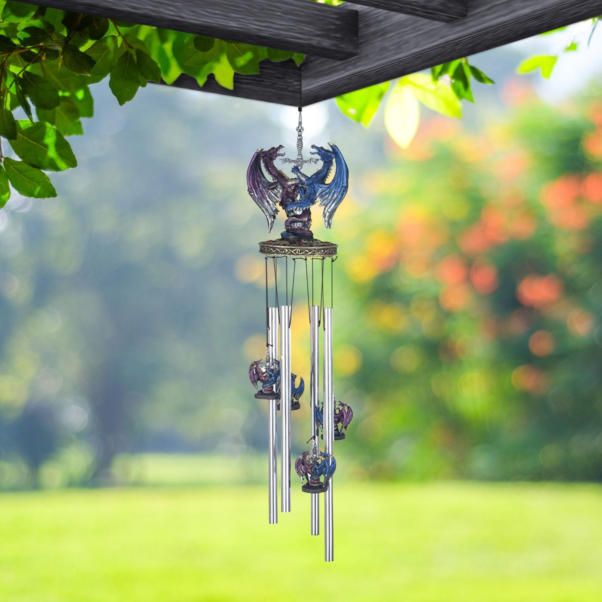 23" Long Round Top Dragon PP/Blue Sword Wind Chime Statue Fantasy Decoration Room/Home Decor New Home Gifts