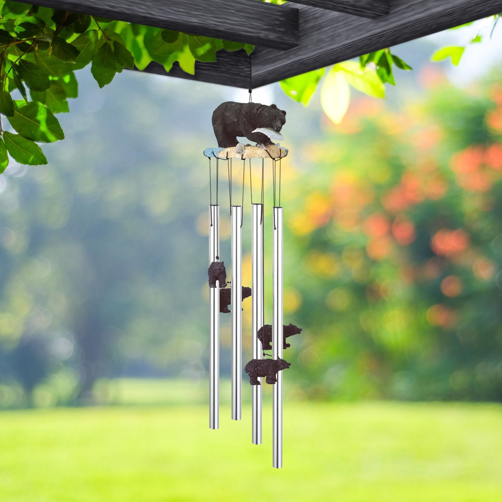 23" Long Black Bear Round Top Wind Chime Statue Fantasy Decoration Room/Home Decor New Home Gifts