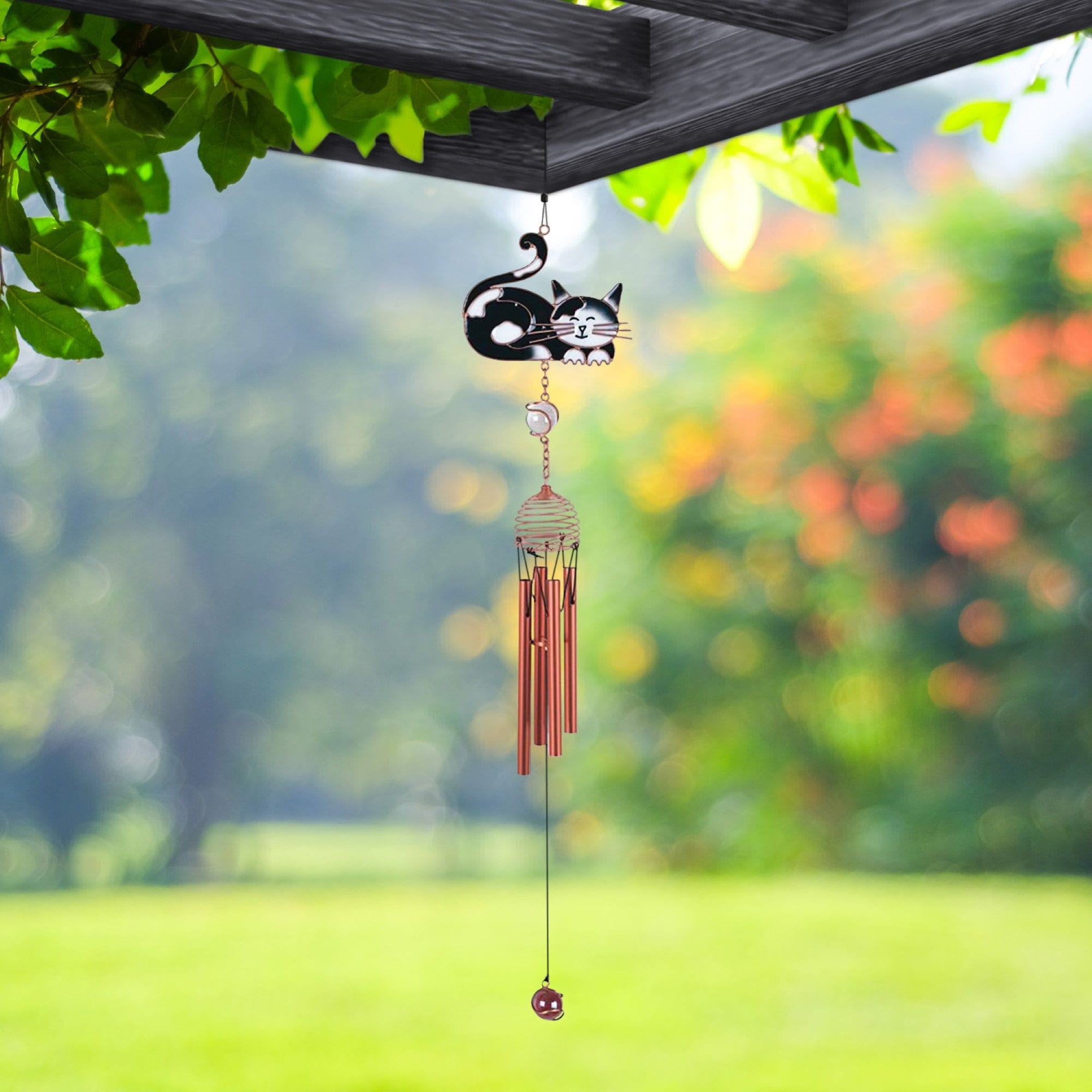 22" Long Black and White Cat Tuxedo Kitty Copper and Gem Wind Chime Statue Fantasy Decoration Room/Home Decor New Home Gifts
