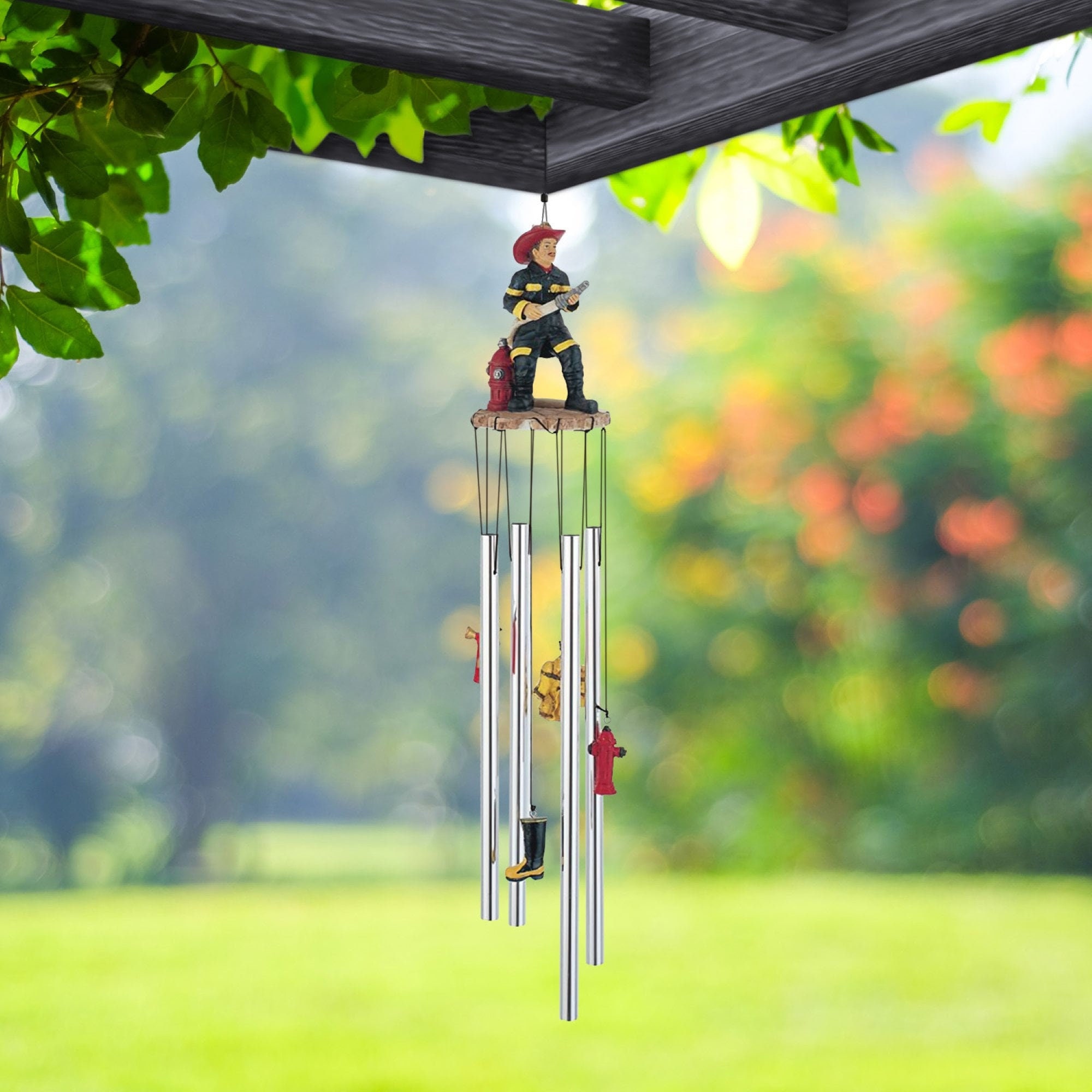 23" Long US Fireman on Duty Round Top Wind Chime Statue Fantasy Decoration Room/Home Decor New Home Gifts