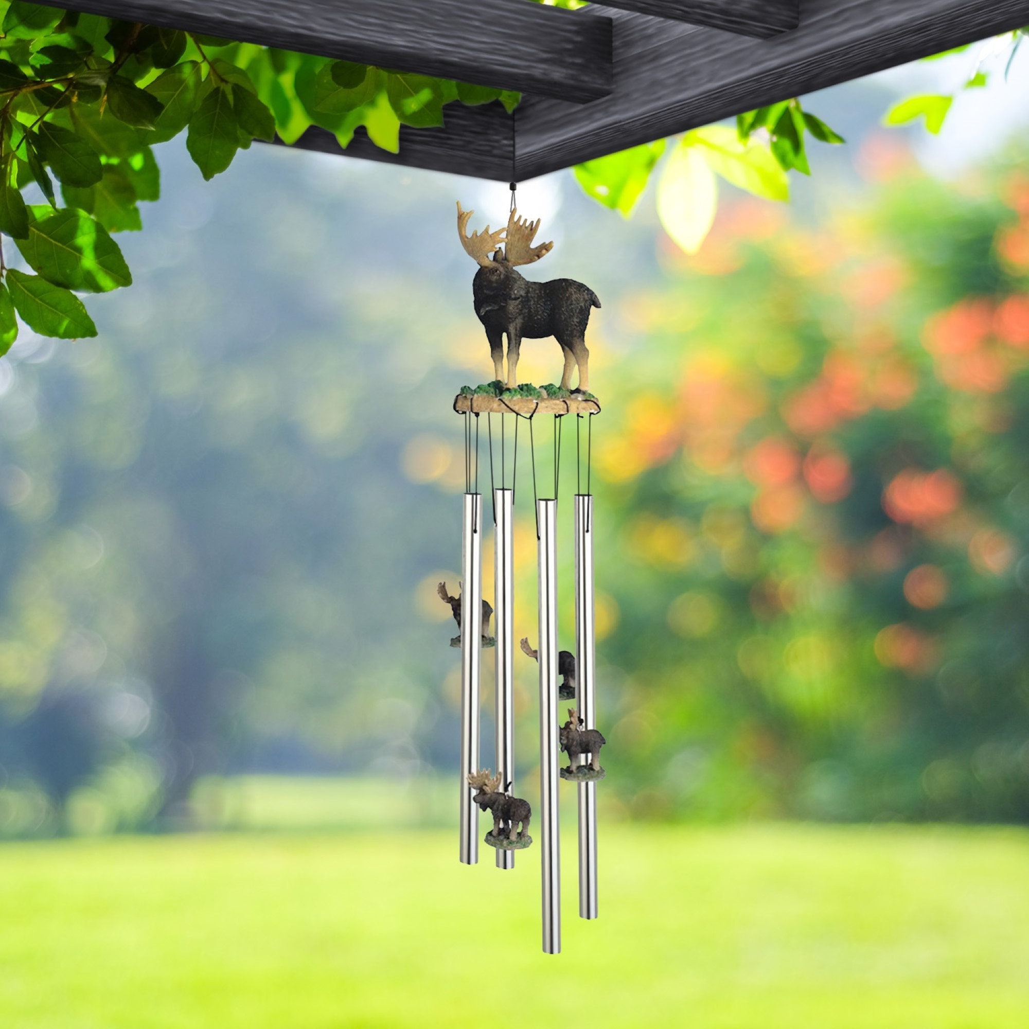 23" Long Round Top Moose Wind Chime Statue Fantasy Decoration Room/Home Decor New Home Gifts