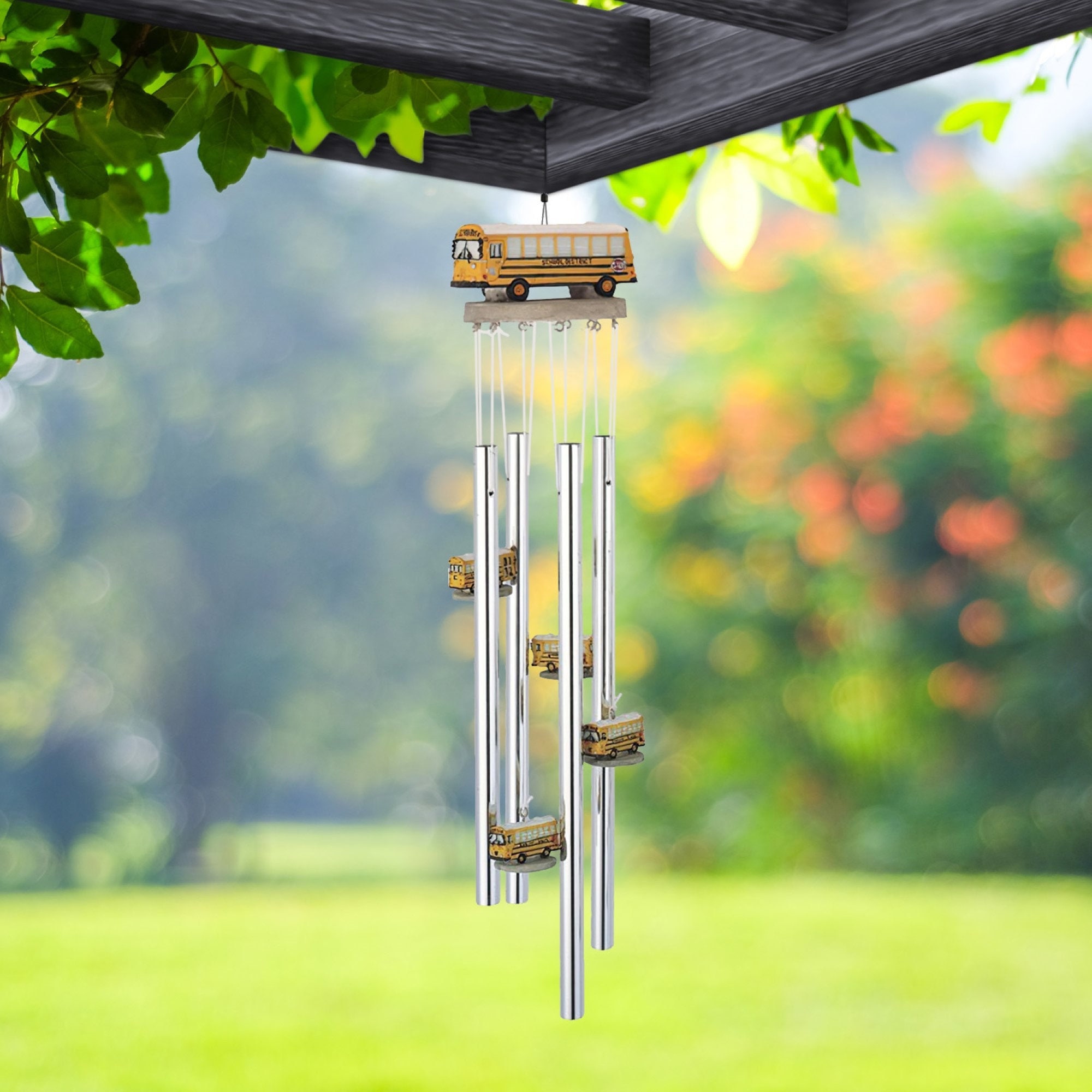 23" Long School Bus Round Top Wind Chime Statue Fantasy Decoration Room/Home Decor New Home Gifts