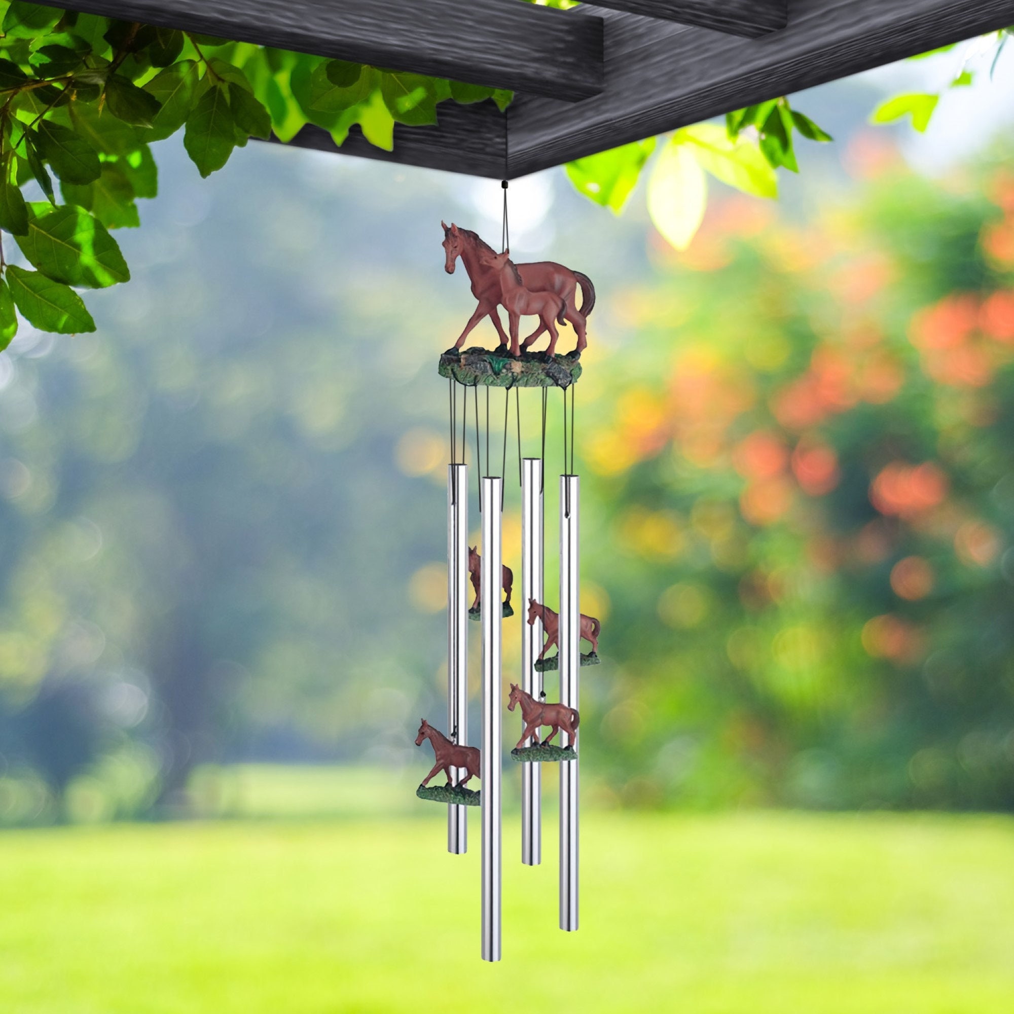 23" Long Round Top Brown Horse with Foal Wind Chime Statue Fantasy Decoration Room/Home Decor New Home Gifts