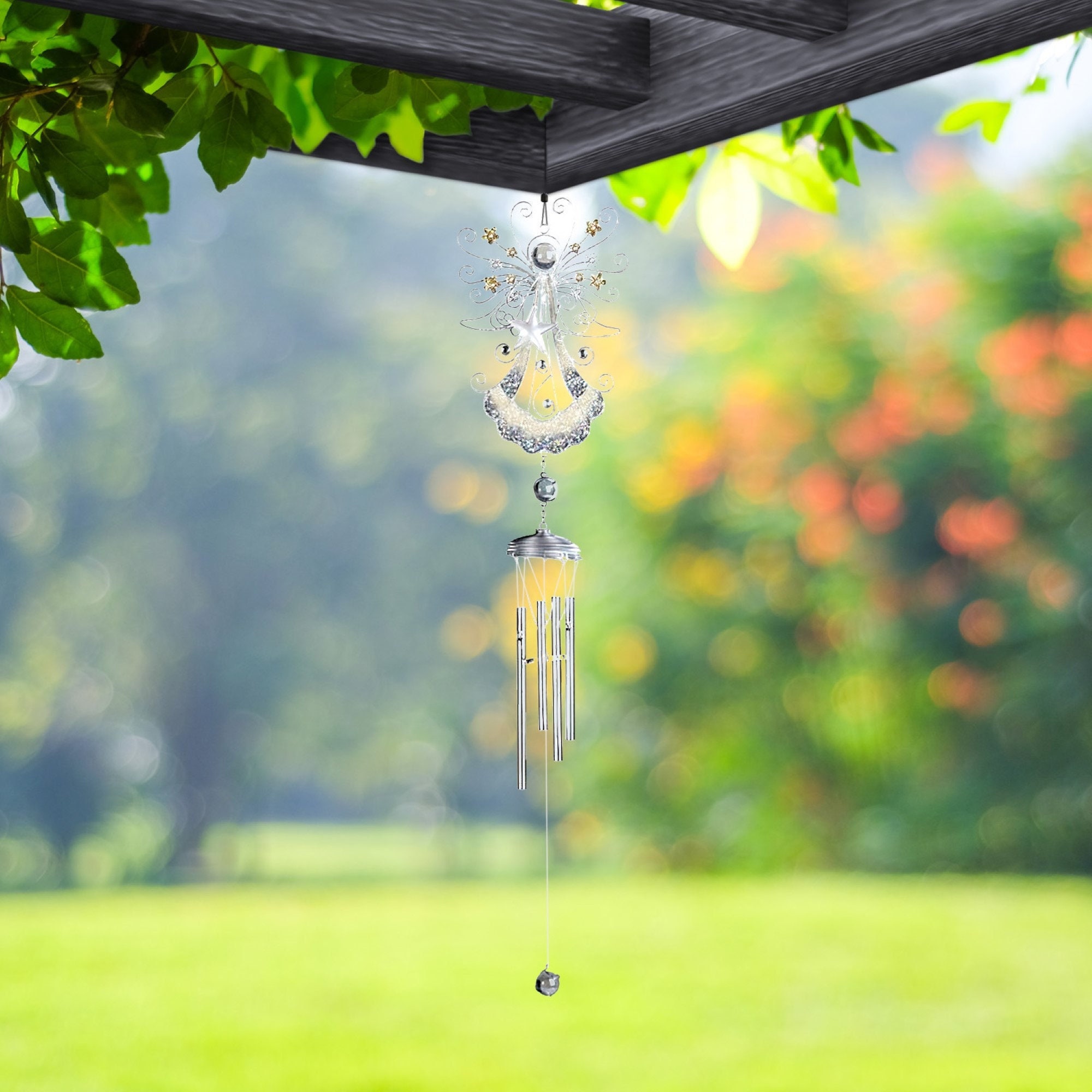 32" Long Silver Snow Angel Copper and Gem Wind Chime Statue Fantasy Decoration Room/Home Decor New Home Gifts