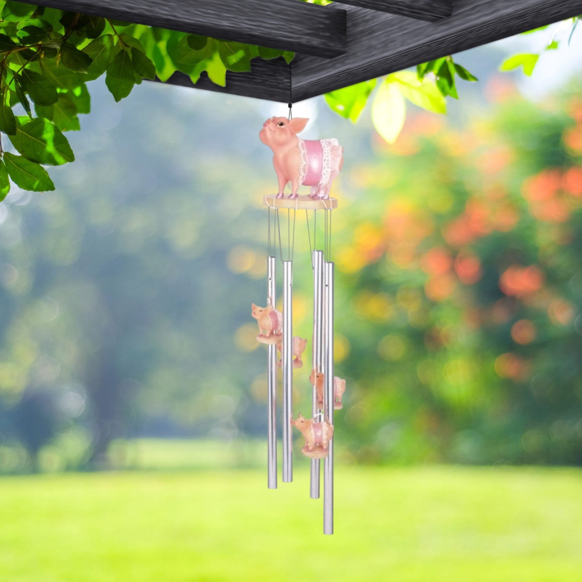 23" Long Pink Pig Round Top Wind Chime Statue Fantasy Decoration Room/Home Decor New Home Gifts