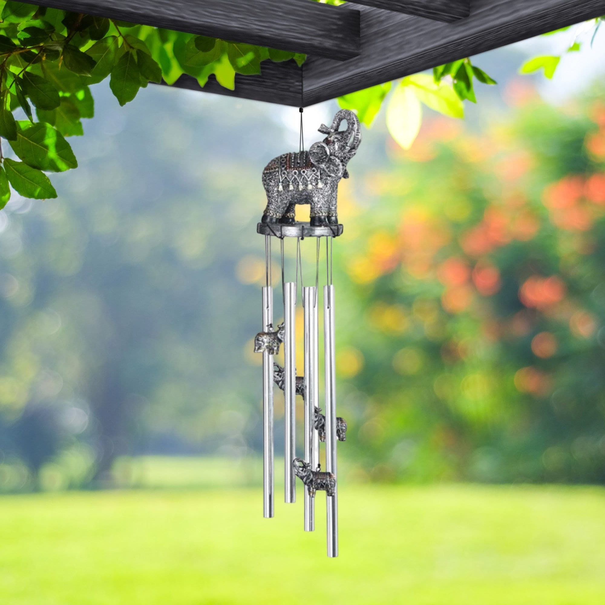 23" Long Thai Elephant with Trunk Up Round Top Wind Chime Statue Fantasy Decoration Room/Home Decor New Home Gifts
