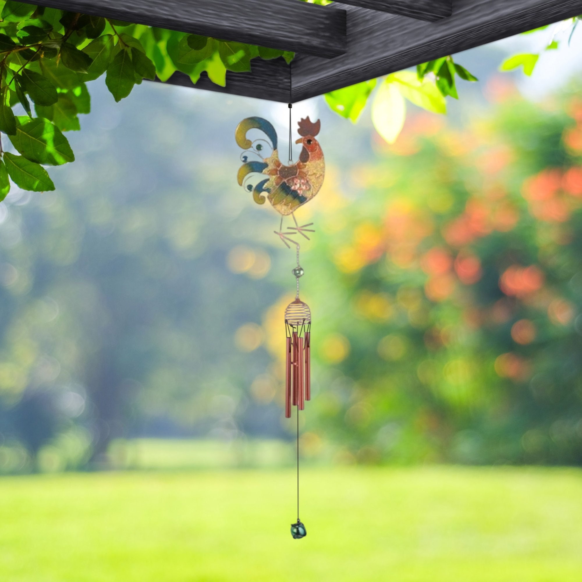 31" Long Rooster Copper and Gem Wind Chime Statue Fantasy Decoration Room/Home Decor New Home Gifts