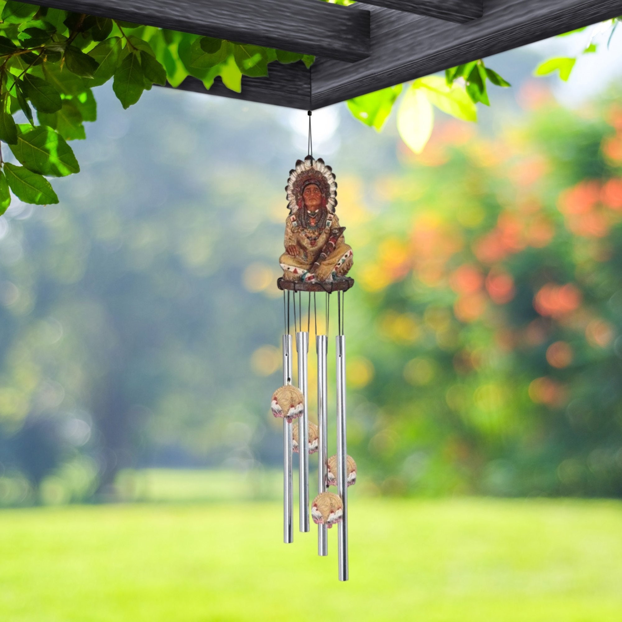 23" Long Indian Chief Round Top Wind Chime Native American Statue Fantasy Decoration Room/Home Decor New Home Gifts